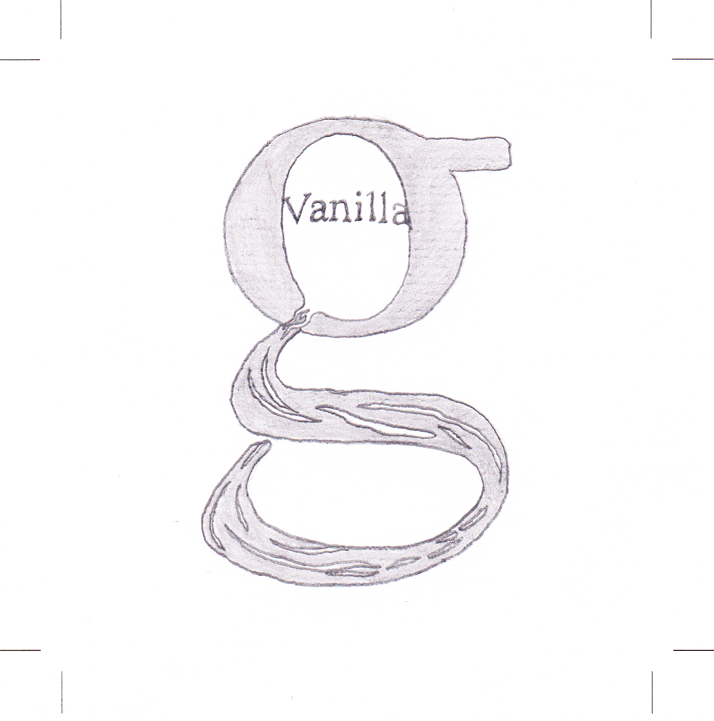 The letter shows a streak of liquid being poured by the bowl of the 'g' displaying vanilla clearly over it.